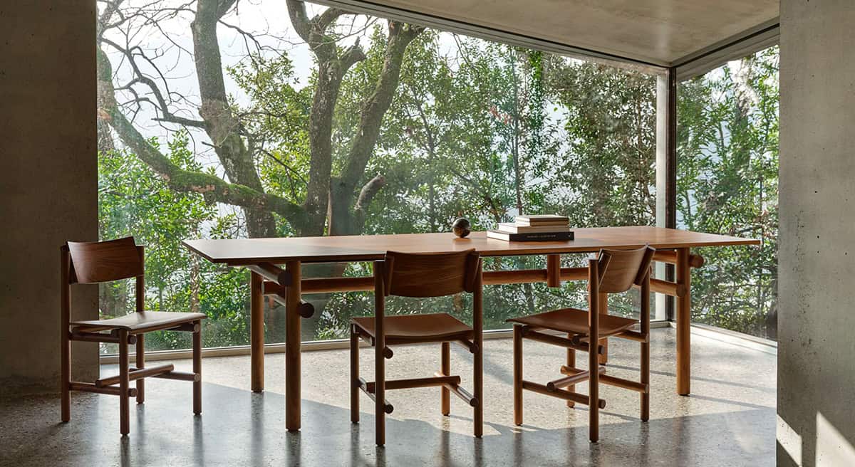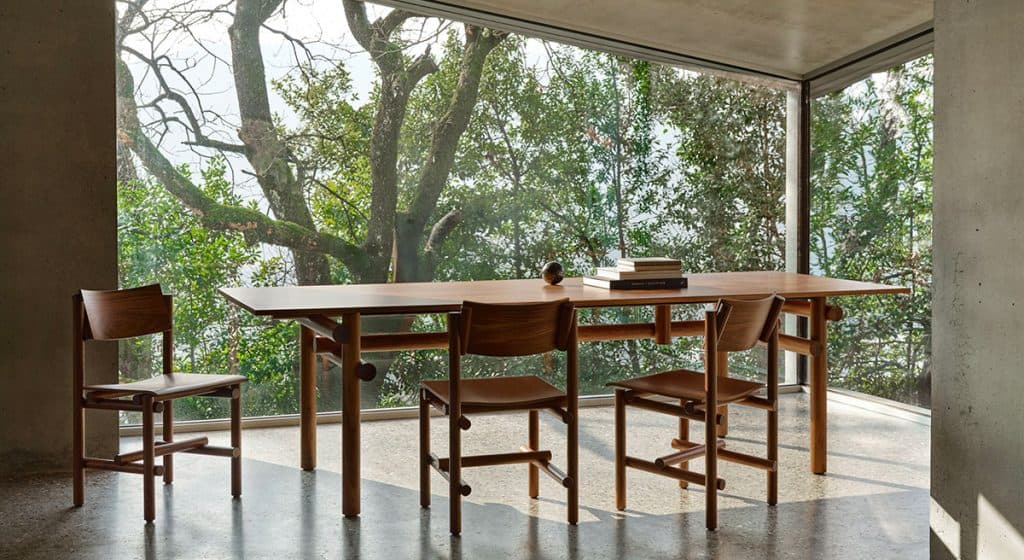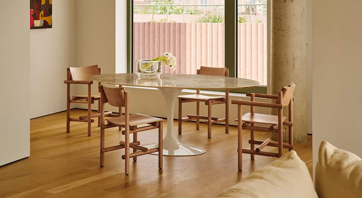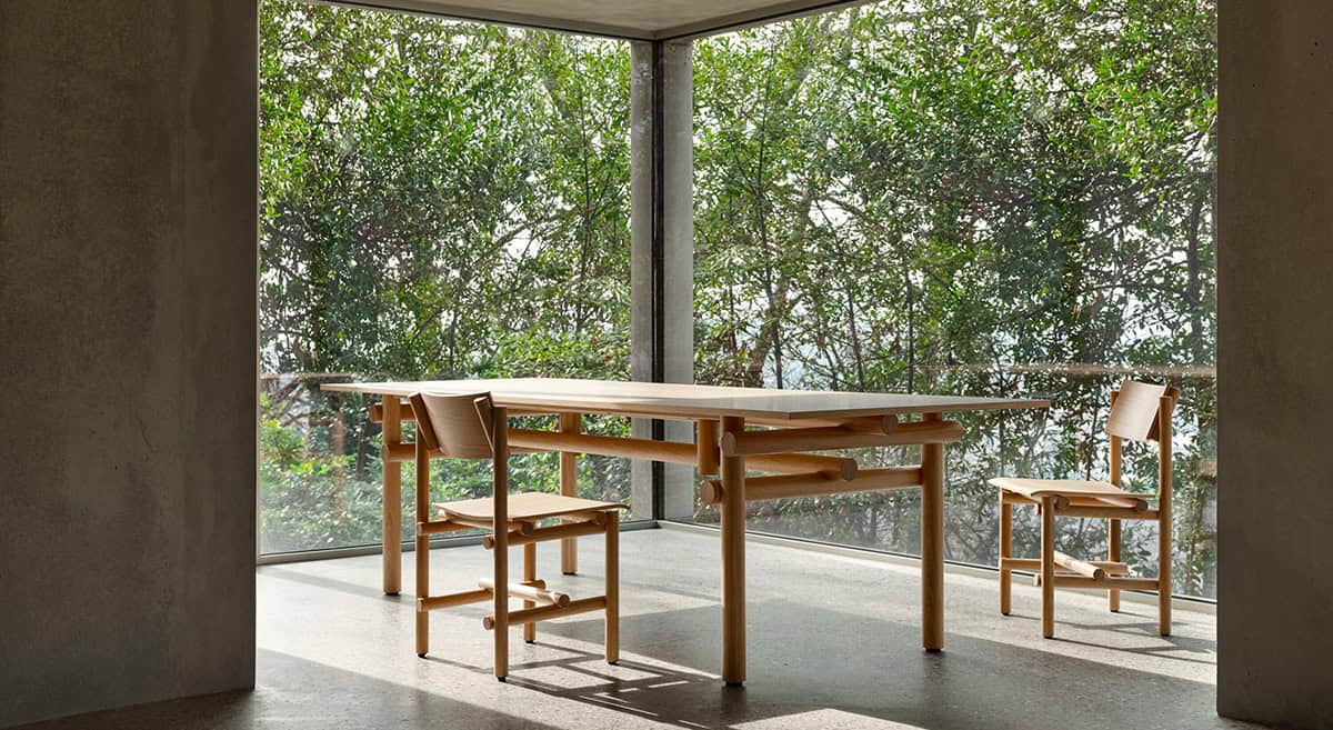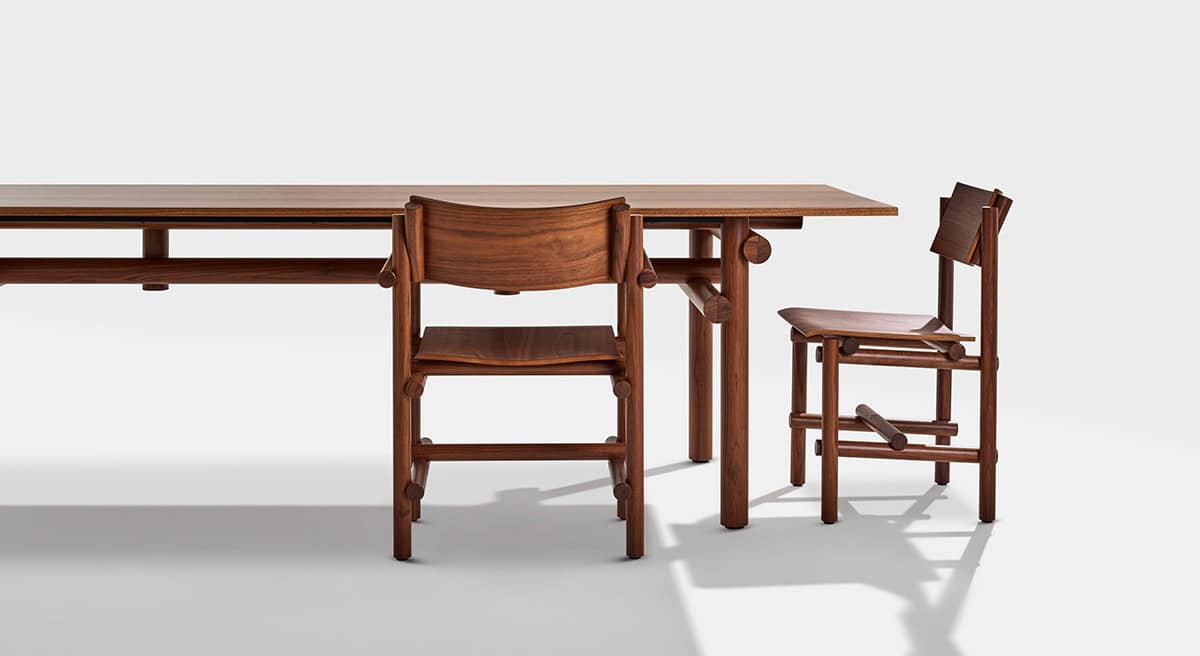 In his first commercial collaboration with Knoll, Muecke applies the principles of his art practice to create an all-wood dining collection with the familiarity of a kitchen table and chairs. “I like to take things for what they are and not try to imagine what someone intended them to be,” explains Muecke. “Ultimately, these are generous objects.”